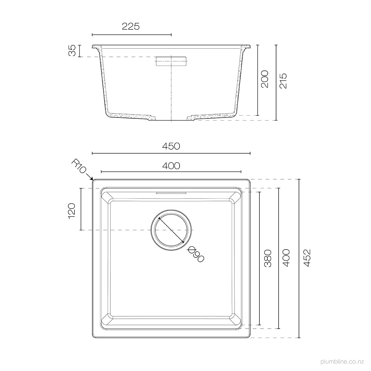Internal Bowl Size: 400 x 400mm (includes 10mm indentation to accomodate sink accessories seamlessly)