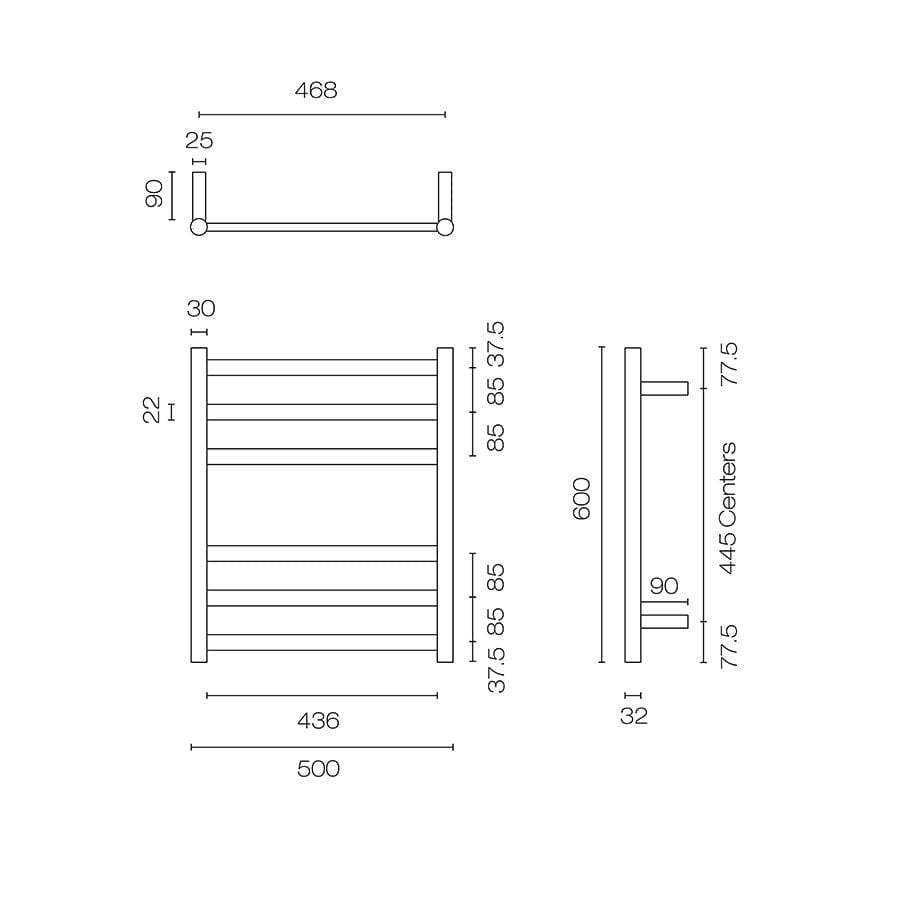 Tube 6 Bar Heated Towel Ladder | 600 x 500mm