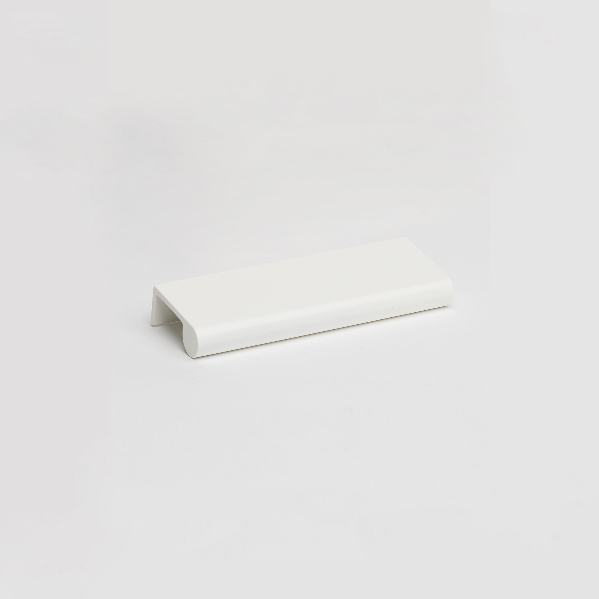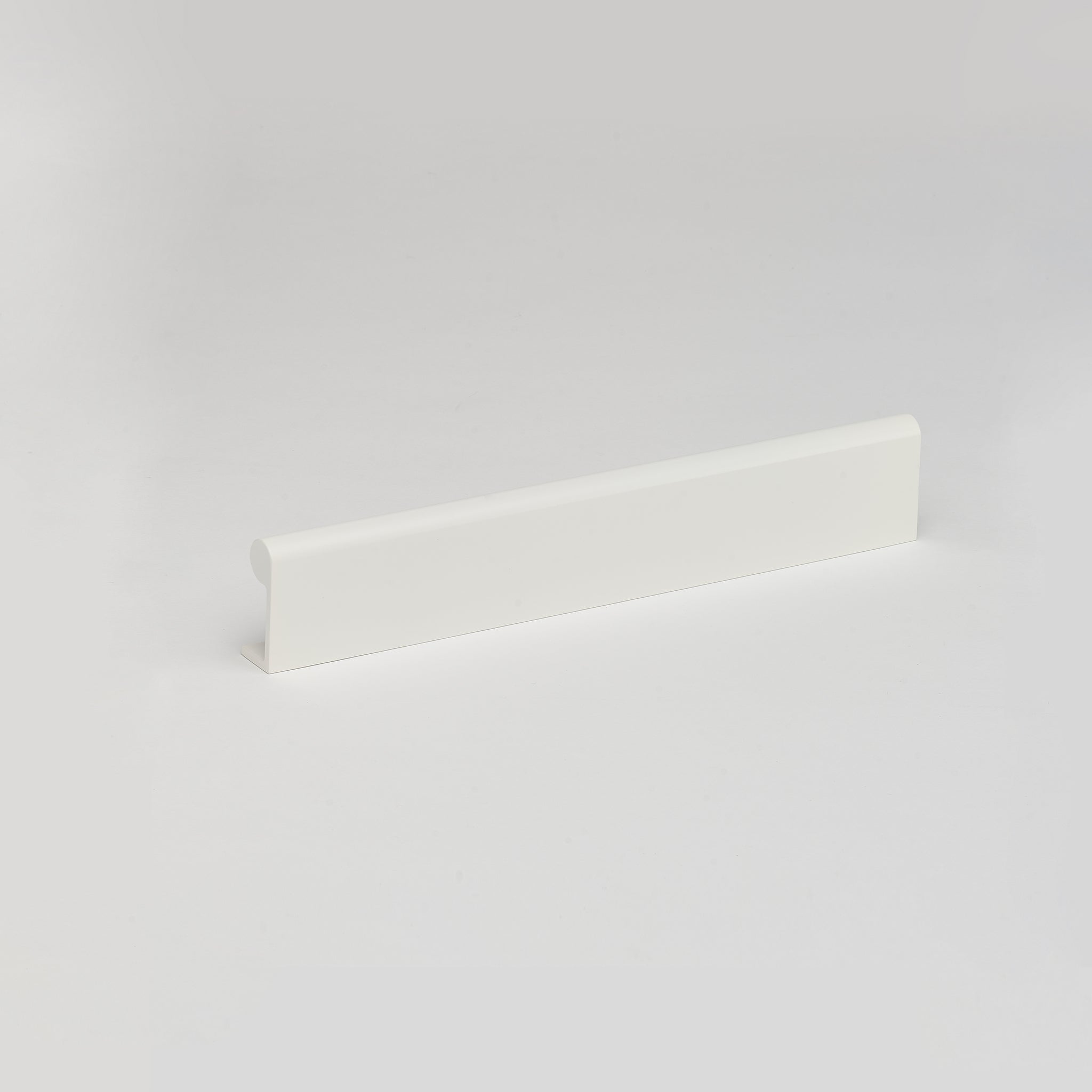 The Lo&Co made of solid brass and powder coated white. The Lincoln Pull features a comfortable rounded edge lip pull. Designed to sit flush on cabinetry, this handle requires a recess of 3mm. Comes in 3 lengths, 130mm, 200mm and 260mm. All with a 45mm projection.