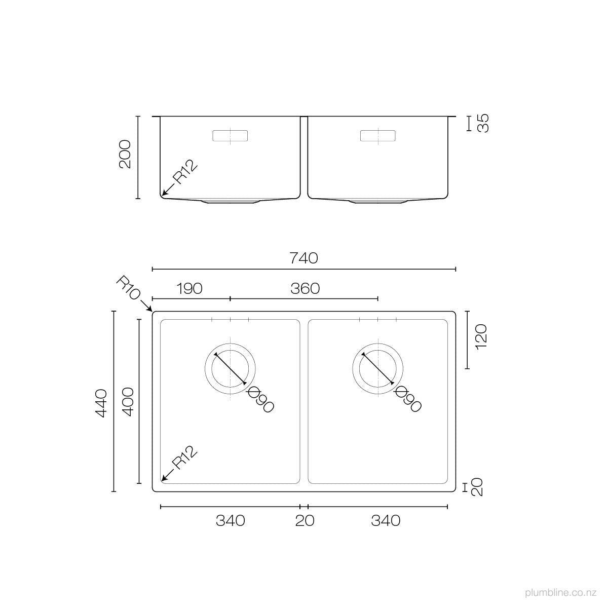 Bowl Size: 340 x 400 x 200mm + 340 x 400 x 200mm