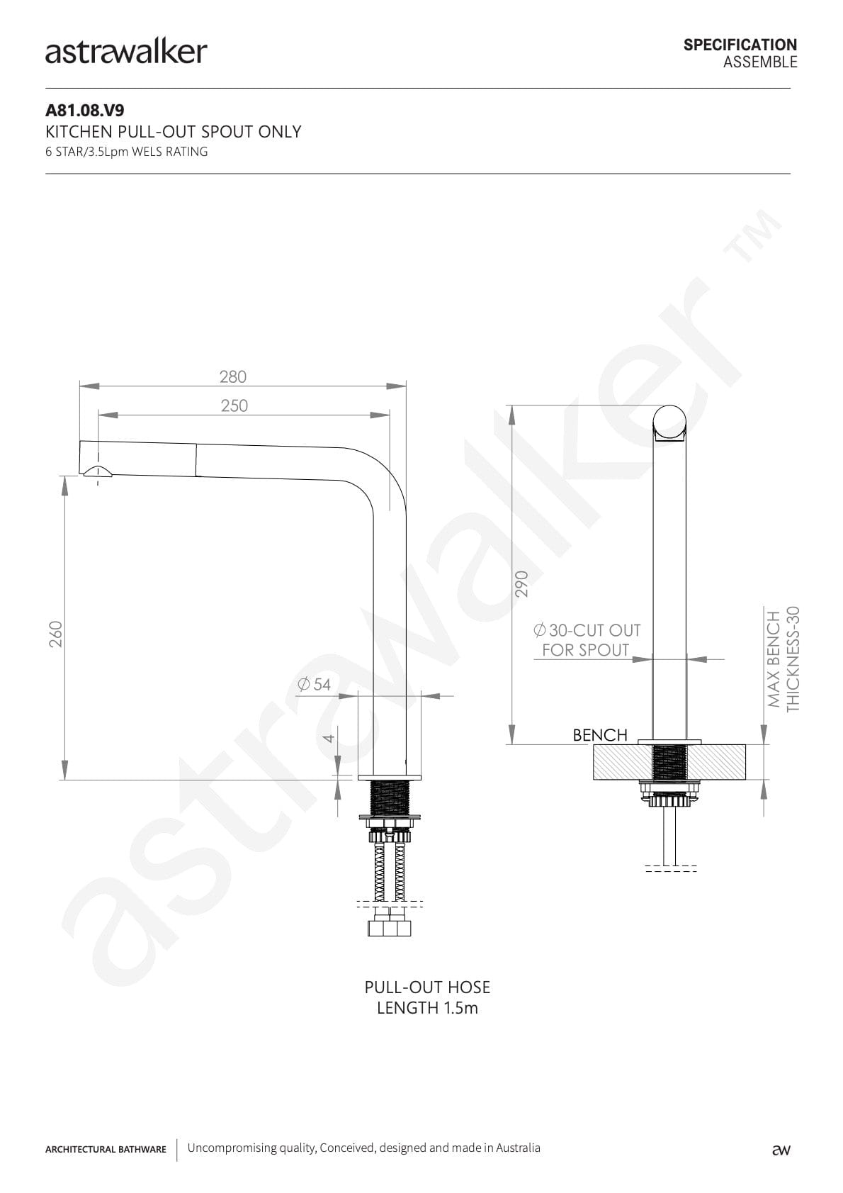 Designed as individual parts, the standout pieces are created as one, but meant to compliment each other. Using a combination of bespoke materials - custom design has never seen such pleasure. Supported by a 10 year warranty and 6 star WELS water rating (3.5 litres per minute).