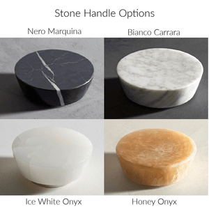 Handle Options: Choose from a standard finished metal handle or one of the stone handles below.
