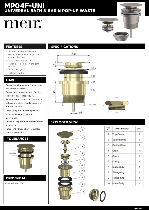 Prioritise safety first with our Meir Universal all-in-one Basin & Bath Pop-up Waste.