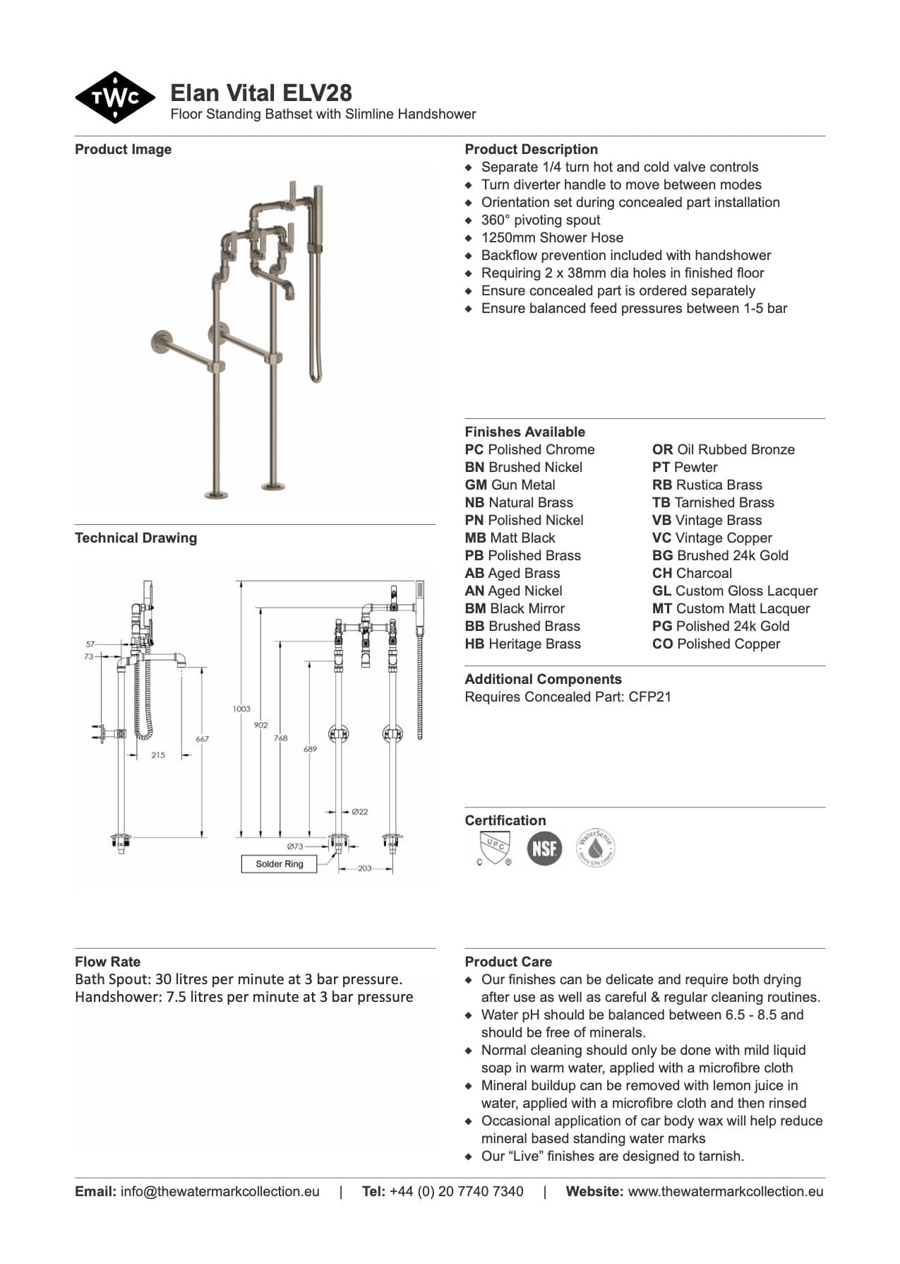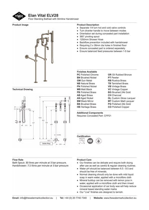 The Watermark Collection Elan Vital Freestanding Bath Set with Slimline Hand Shower