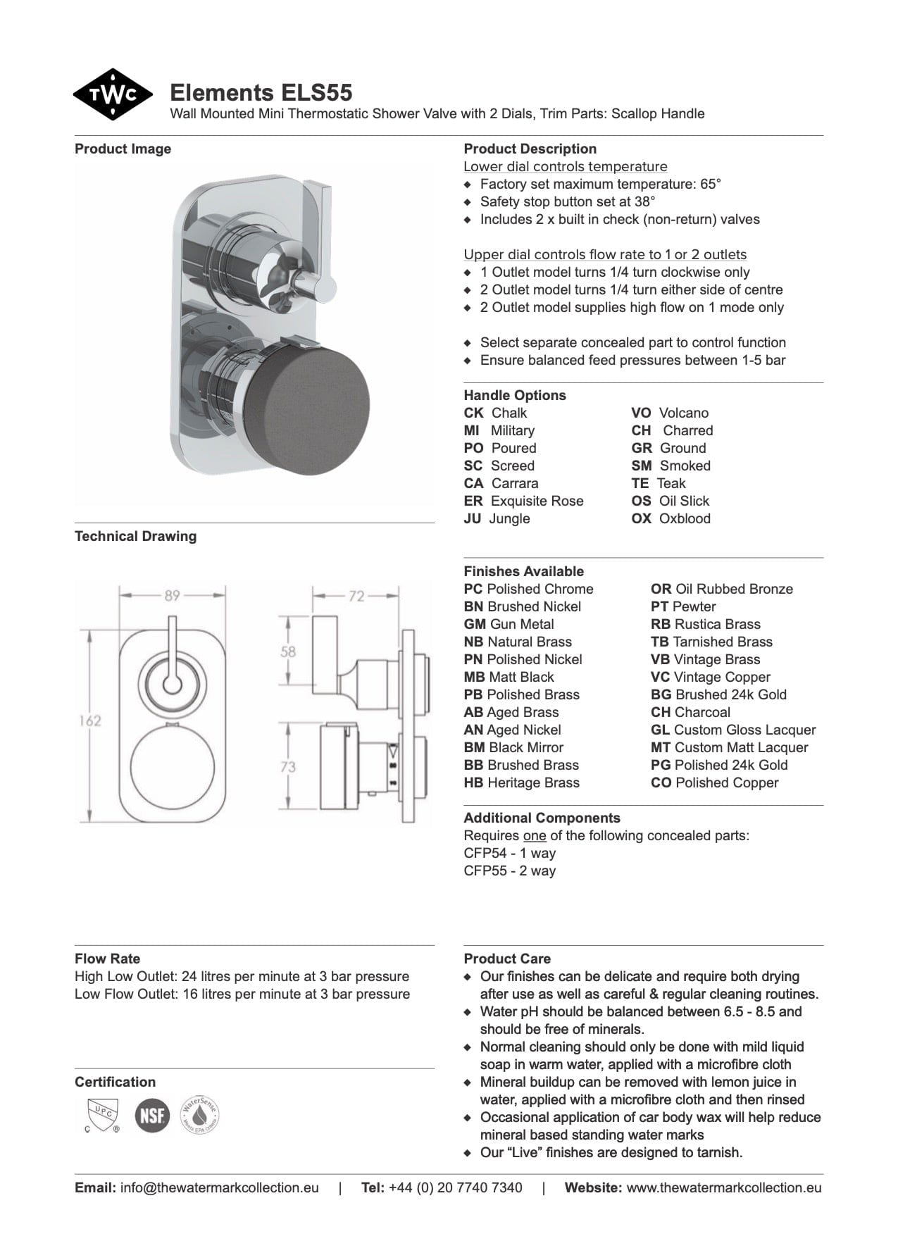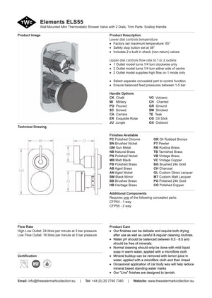 Comes with CFP54 (1 way) or CFP55 (2 way) concealed parts. Please note this mixer can be used as a one way flow shower mixer, where one dial adjusts temperature and the other adjusts pressure. It can also be used as a two way flow diverter mixer to change the direction of the water flow. If used as a diverter, one dial will adjust temperature and the other will adjust both pressure and the direction of the water flow.