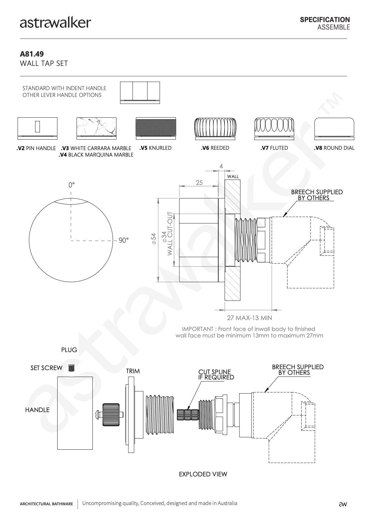 Please note: Natural Brass, Aged Brass, Eco Brass, English Brass, and Charcoal Bronze are living finishes which are designed to evolve and change over time. Visit ASTRA WALKER to view individual finishes and for more product information.