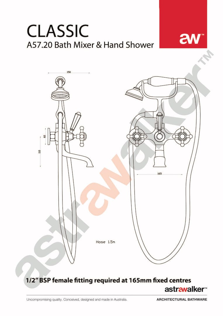 Astra Walker Classic Wall Mounted Bath Mixer with Single Function Hand Shower