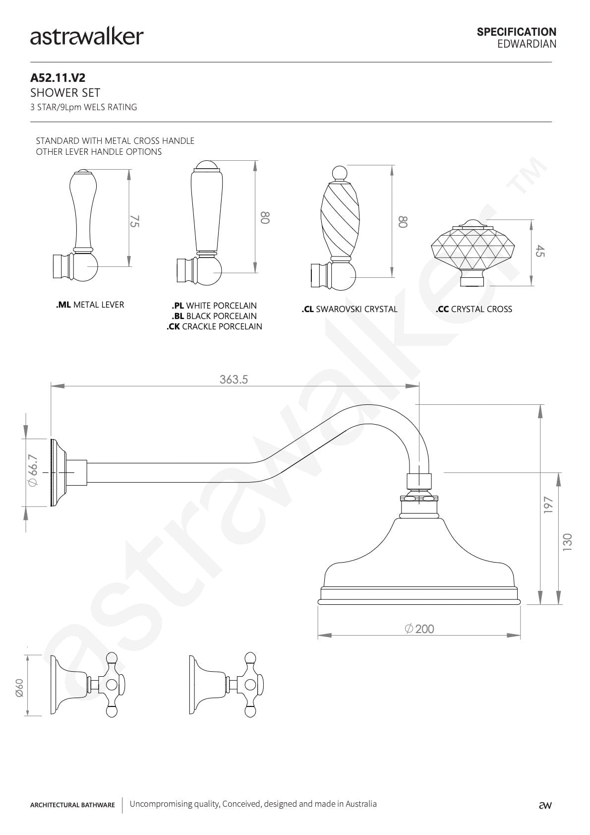 Presenting an aura of richness and refinement for modern interiors, the Edwardian collection is elegant and sophisticated. Create an atmosphere of ambience with the classic contours. Supported by a 10 year warranty and 3 star WELS water rating (8.5 litres per minute). Also available with 3 star WELS water rating (9 litres per minute) upon request.