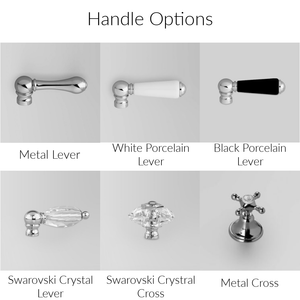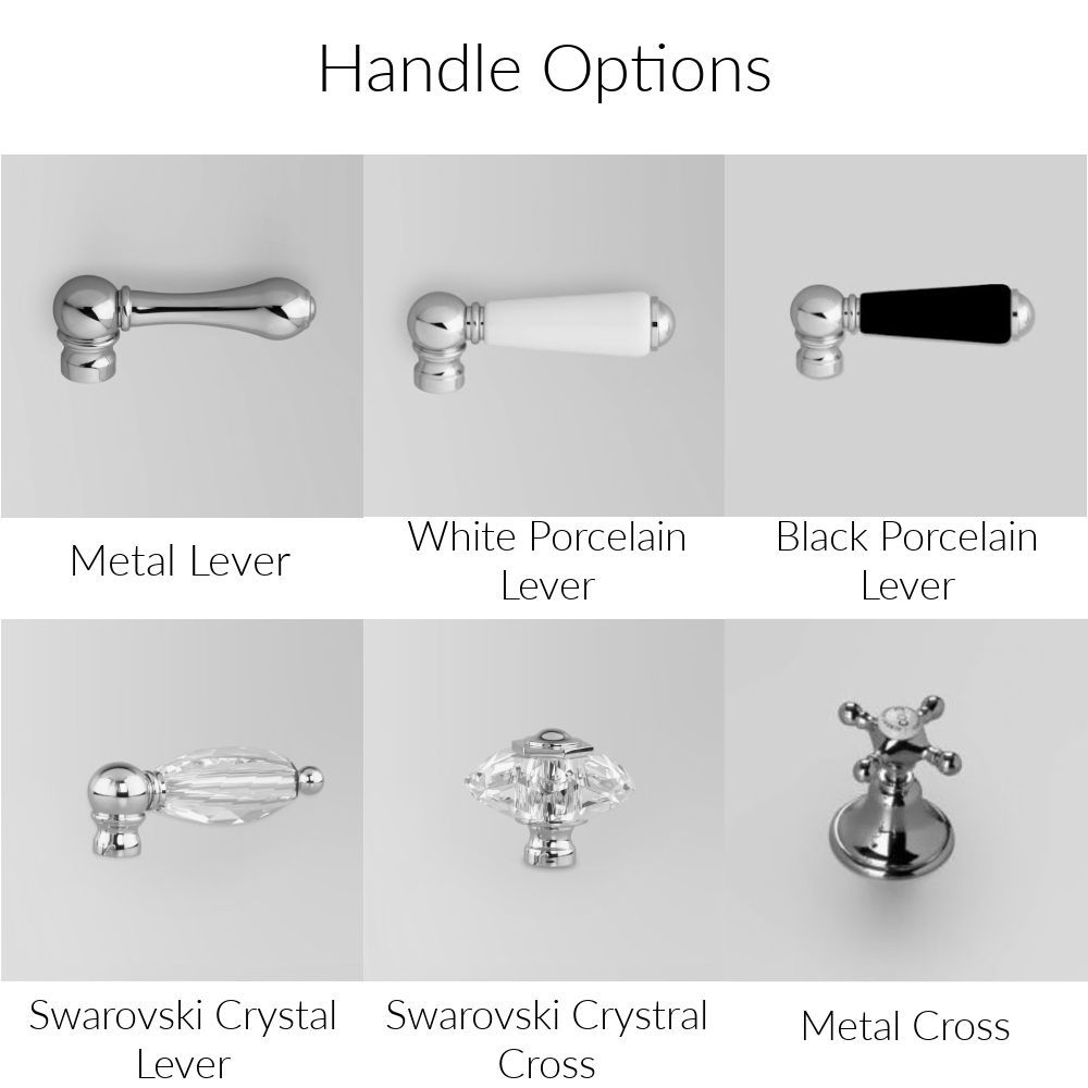 Available with a range of handle options including metal, white porcelain, black porcelain and Swarovski crystal.