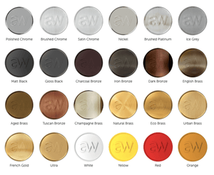 Please note: Natural Brass, Aged Brass, Eco Brass, English Brass, and Charcoal Bronze are living finishes which are designed to evolve and change over time. Visit ASTRA WALKER to view individual finishes and for more product information.