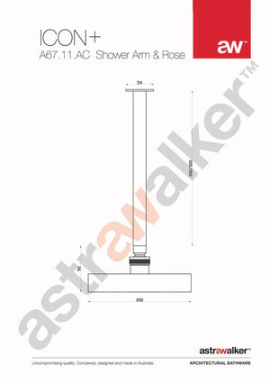 This shower comes standard with a 300mm arm. It is also available with a 200mm, 450mm, 600mm or 900mm arm at an additional cost (please contact us for pricing).