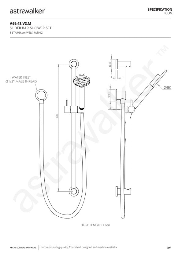 Sophisticated, stylish and cherished, the design philosophy behind our Icon range is one of absolute simplicity. The choice is incredibly exciting and vast from Astra Walker’s leading contemporary collection. With a variety of finishes available the Icon range can be tailored to suit your needs, and like all of the Astra Walker products, the quality is of the highest possible standard. Supported by a 10 year warranty and 3 star WELS water rating (8 litres per minute). Also available with 4 star WELS water rating (5.5 litres per minute) upon request.