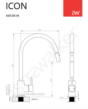 Sophisticated, stylish and cherished, the design philosophy behind our Icon range is one of absolute simplicity. The choice is incredibly exciting and vast from Astra Walker’s leading contemporary collection. With a variety of finishes available the Icon range can be tailored to suit your needs, and like all of the Astra Walker products, the quality is of the highest possible standard. Supported by a 10 year warranty and 6 star WELS water rating (3 litres per minute).