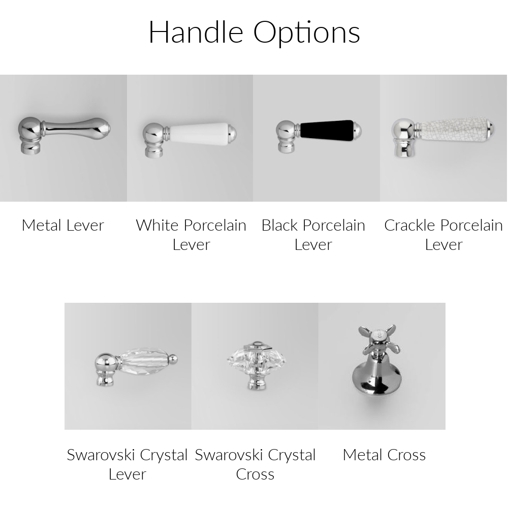 Available with a range of handle options including metal, white porcelain, black porcelain, crackle porcelain and Swarovski crystal.