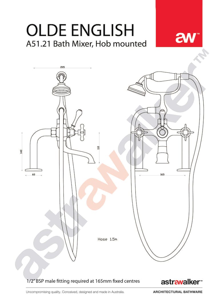 Embed sophisticated glamour with the Olde English collection. Reminiscent of times gone by, this collection exudes warmth and elegance. Stylish silhouettes and detailing of the lever options add a stunning simplicity to the décor. Supported by a 10 year warranty and 3 star WELS water rating (9 litres per minute) - hand shower only.