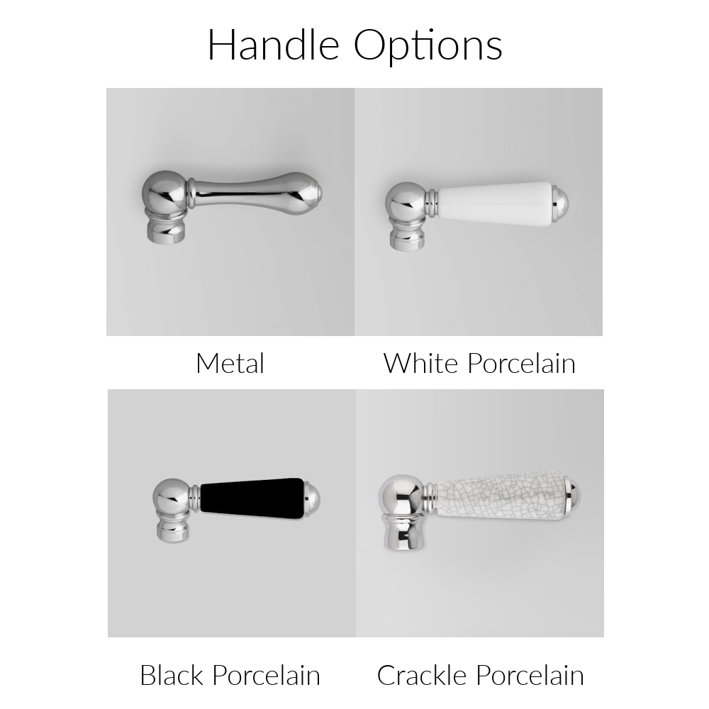 Available with a range of handle options including metal, white porcelain, black porcelain and crackle porcelain.