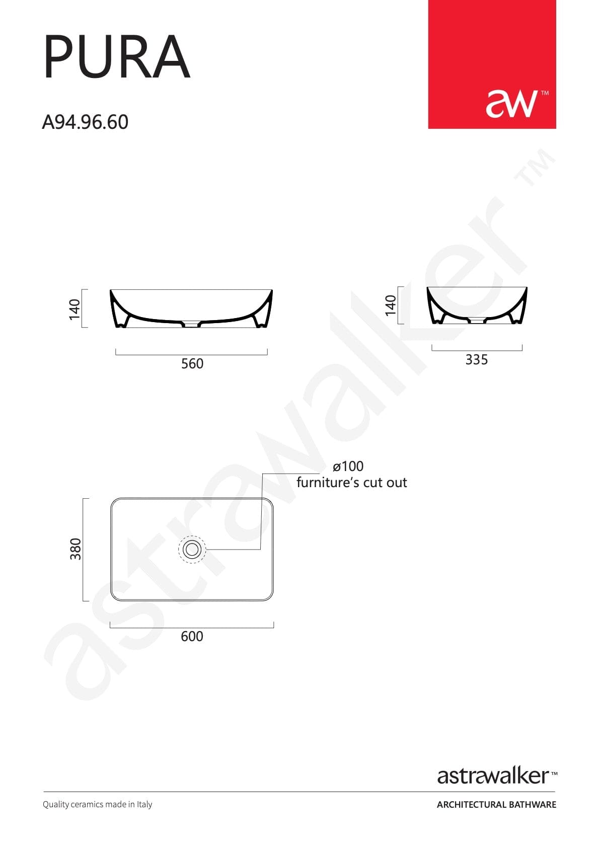 Astra Walker Pura 600 Rectangle Vessel Basin | Gloss White