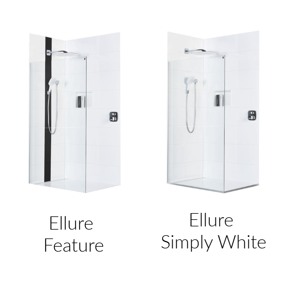 The Ellure Tile Look Wall features sleek horizontal lines etched into a crisp white acrylic surface, with an optional feature panel in gloss black to enhance tapware. The 2400mm high Ellure walls are scaleable, creating infinite possibilities in sophisticated style.
