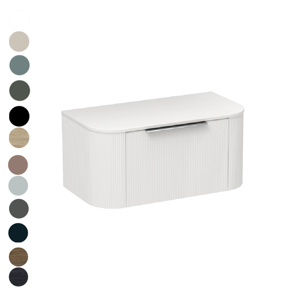 A beautiful combination of curves is formed when our latest vanity collection, Fluting and curves meet in our Ava Curve collection. The Opaco top is available in three colours to complement, or contrast, your choice of vessel basin. A fine fluted profile, available in modern thermoform colours with handles available to complement your vanity or tapware.