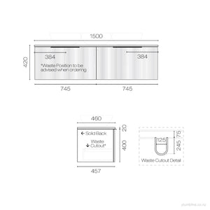 • When ordering this vanity please contact us to advise of your colour option: Comes in White, Lana Grey, Tusk, Kobe, Villa Blue, Fjord, Atmoss, Kombu Green, Slate, Marine Blue, Matte Black, Ranfurly Oak, Methven Oak, Black Bark, Tahoe Walnut