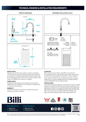The Good Design Award Winning Multifunction Mixer tap complements the space saving and multifunctional approach of Billi’s Home Range of products perfectly, negating the requirement for an additional domestic supply mixer tap while providing a sleek solution to dispensing filtered water.