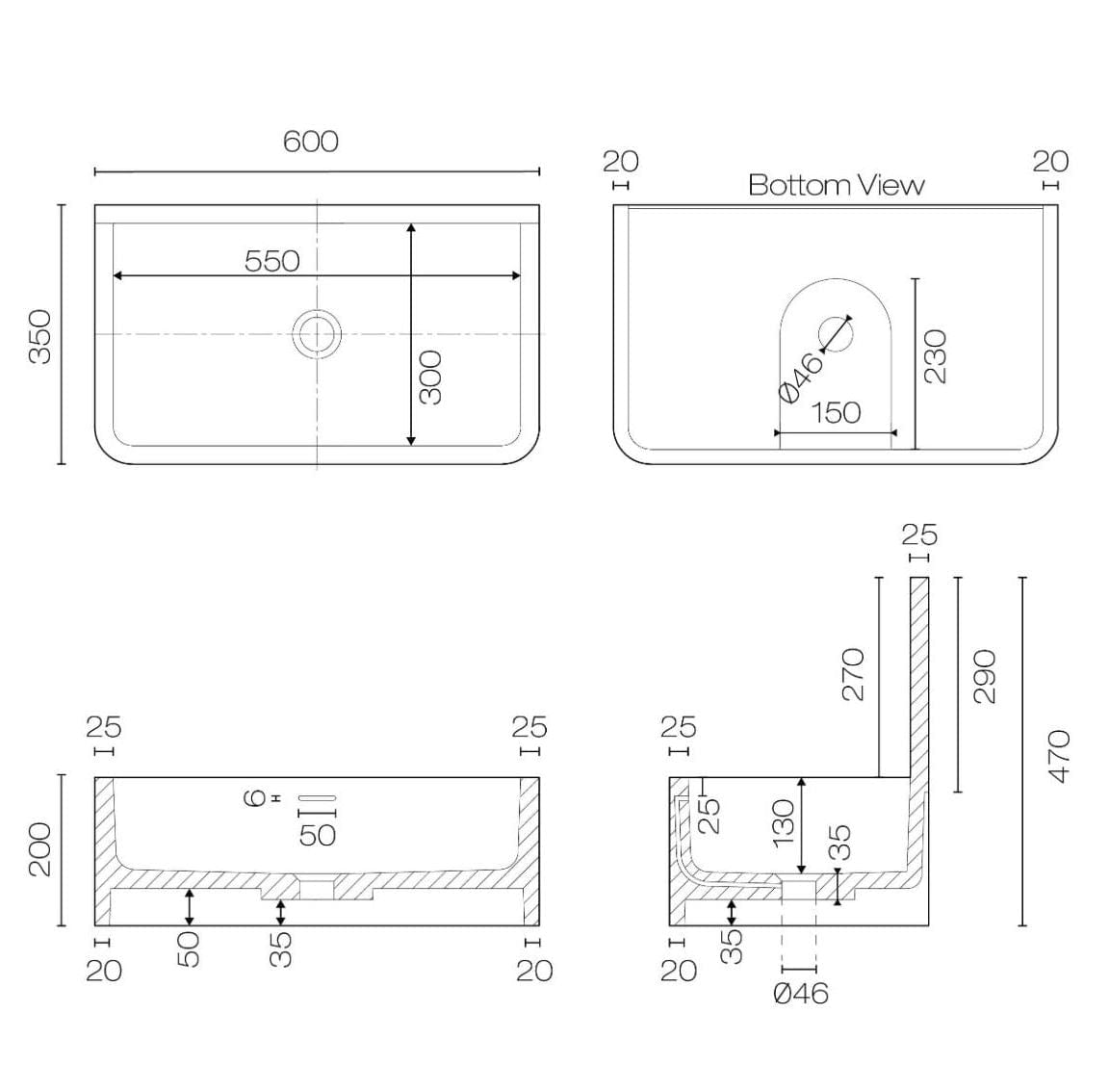 600mm W x 350mm D x 470mm H