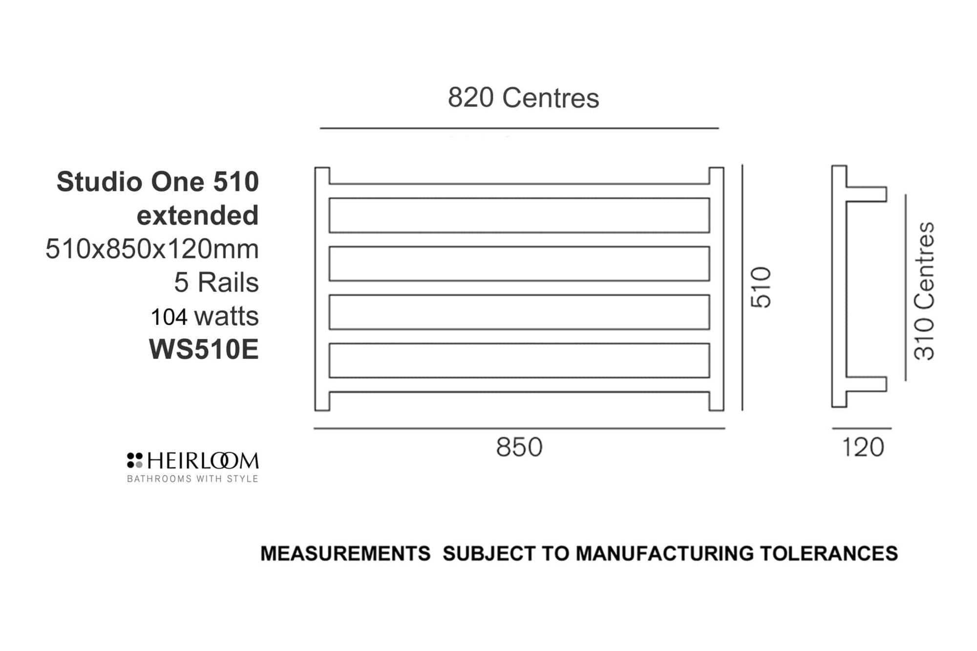 Heirloom Studio 1 510 Extended Heated Towel Ladder | Black