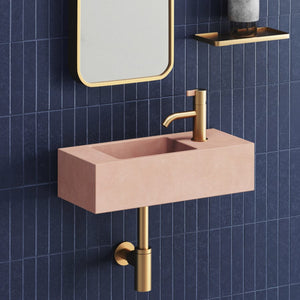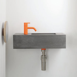 The Fox is a compact concrete basin, with a side vanity area and optional surface mounted taphole.