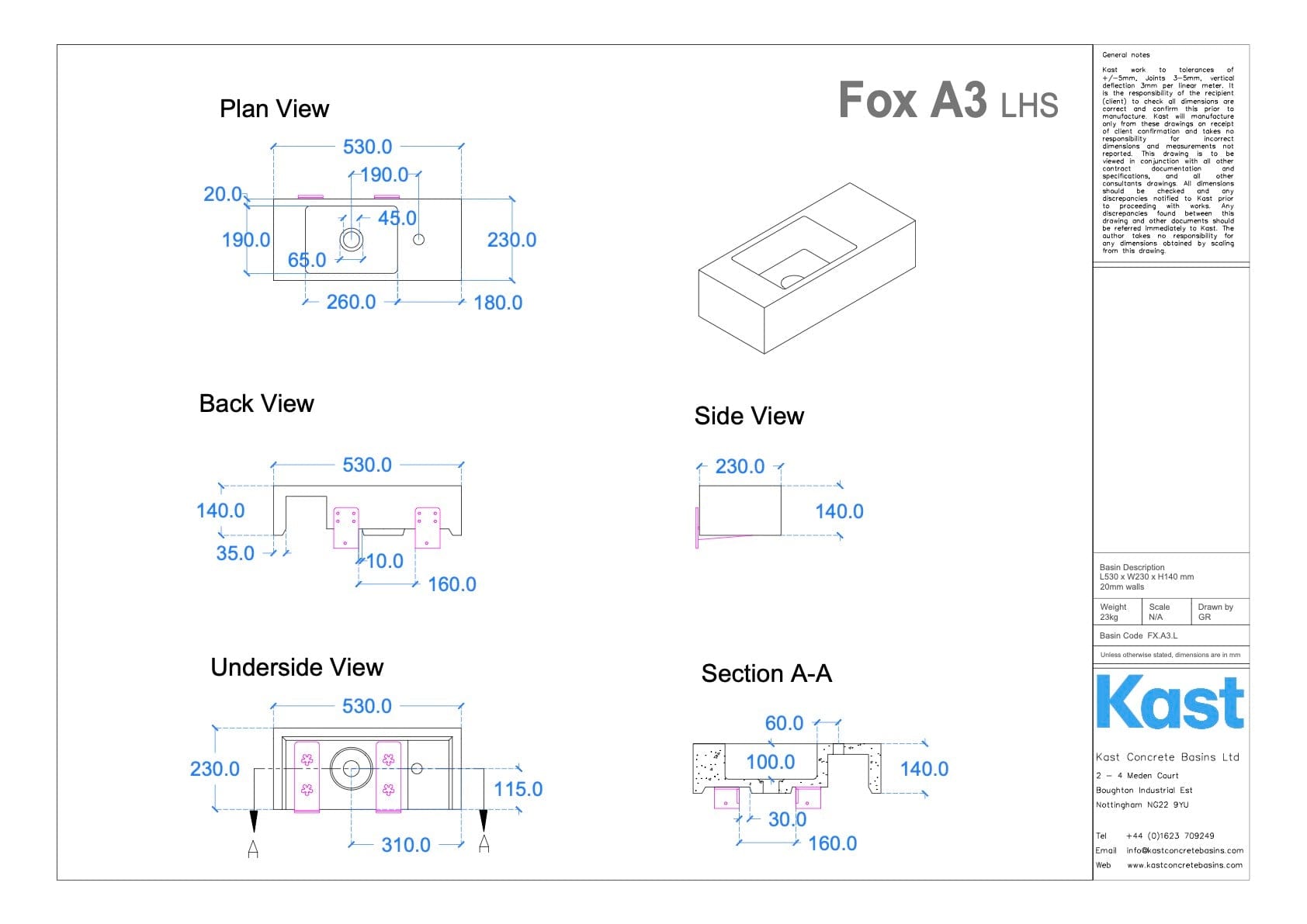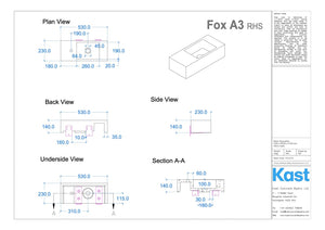• FX.A3 = 530mm Length x 230mm Width x 140mm Height - 20mm Front Edge Thickness - 23kg