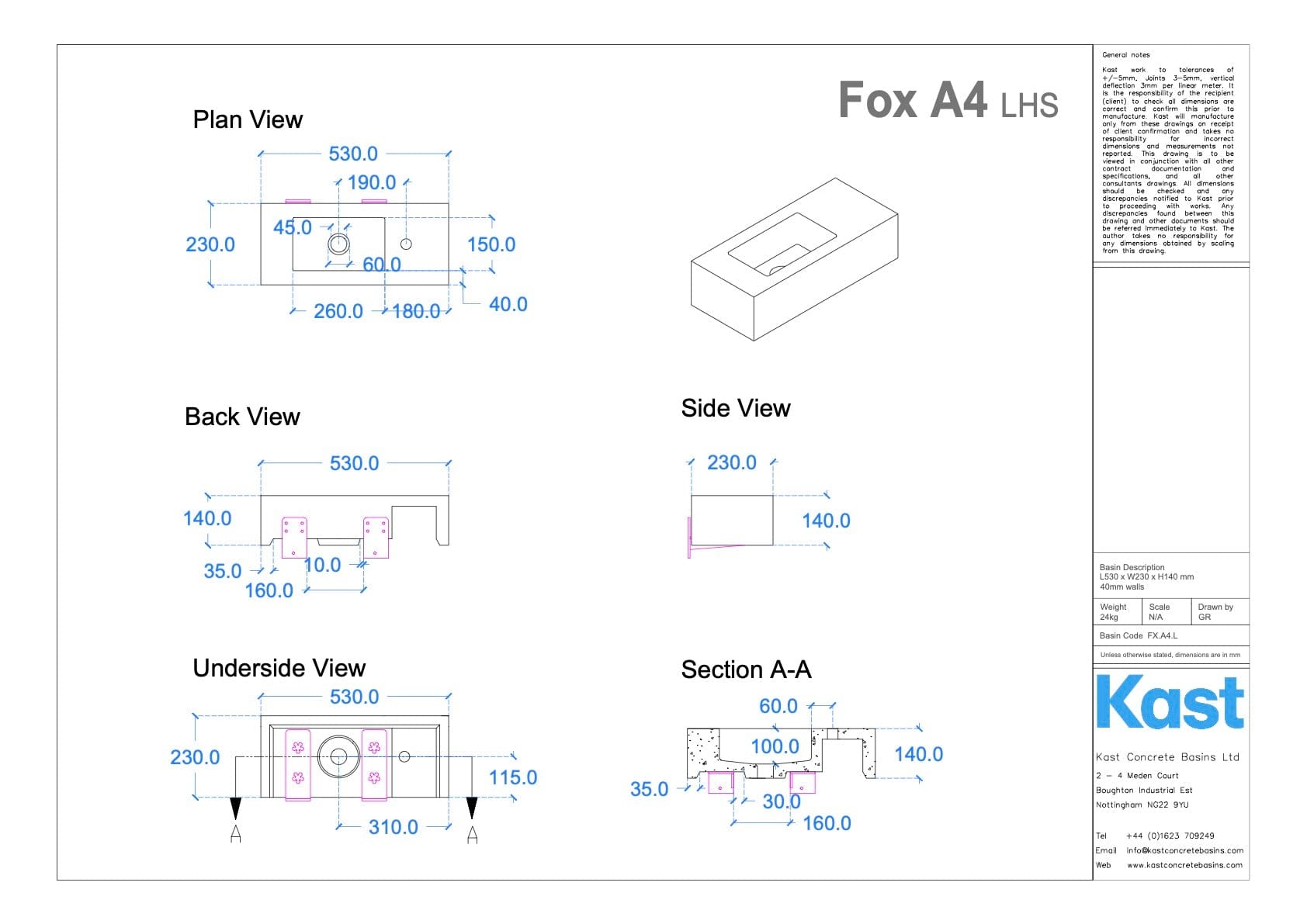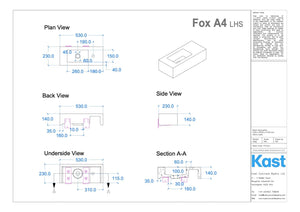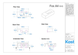 • FX.A4 = 530mm Length x 230mm Width x 140mm Height - 40mm Front Edge Thickness - 24kg