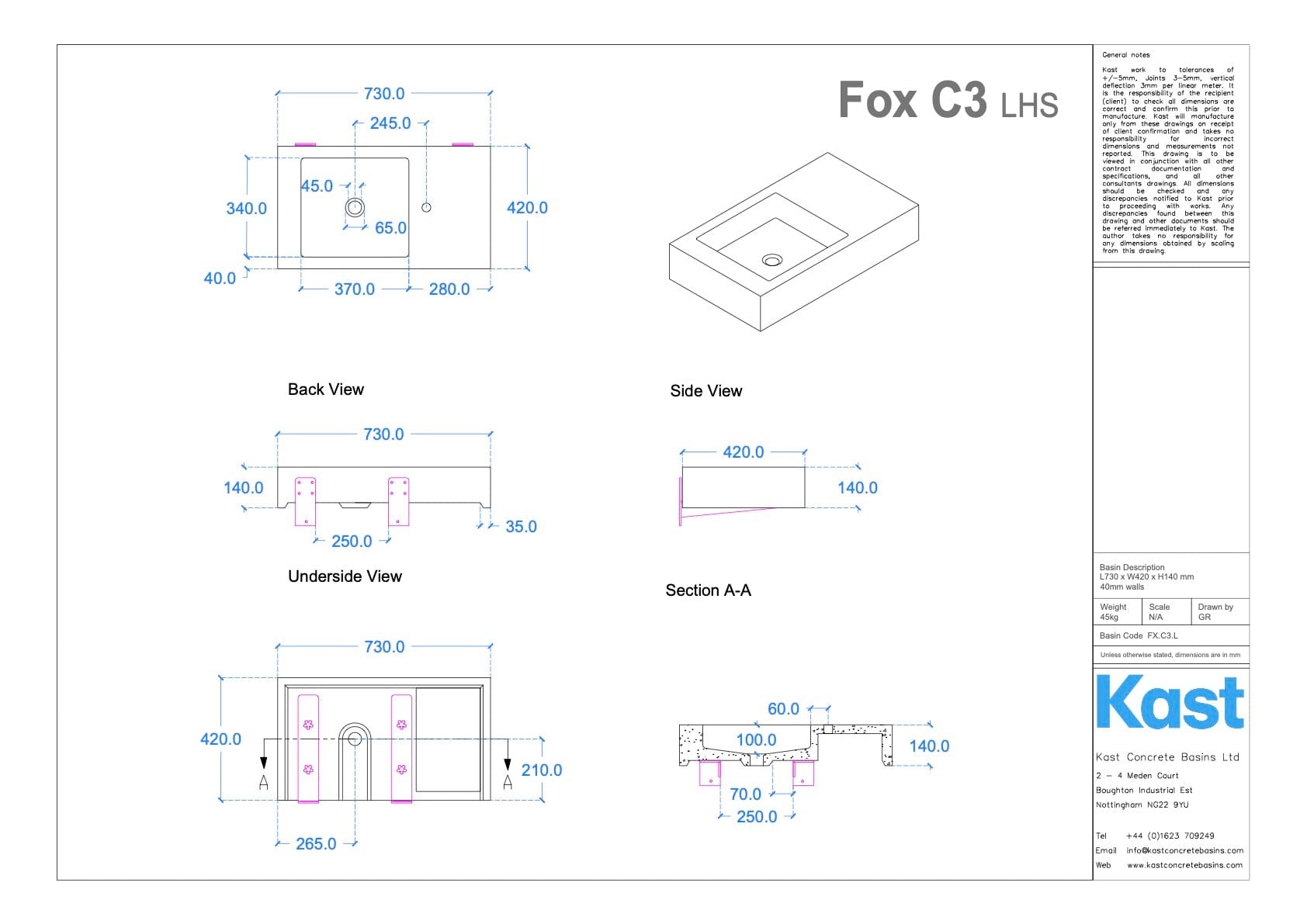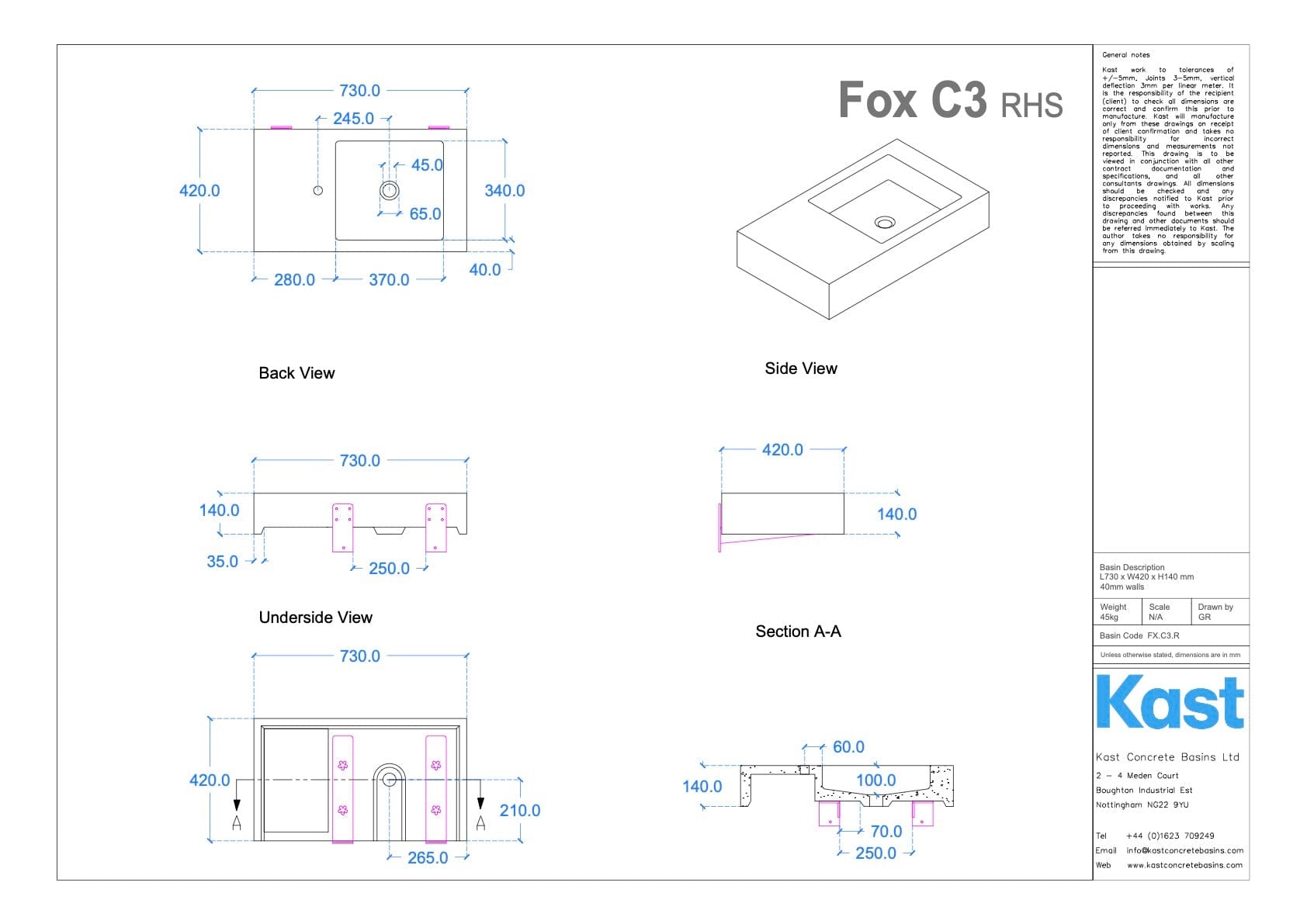 We recommend reading the Kast Advisory Document before purchasing one of their products. This document provides important information about concrete characteristics and useful aftercare tips. For more information visit the Kast Concrete Basins website.