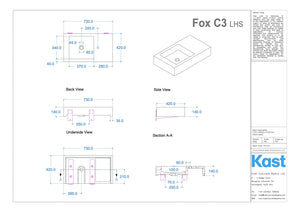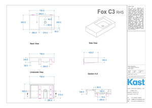 • FX.C3 = 730mm Length x 420mm Width x 140mm Height - 40mm Front Edge Thickness - 45kg