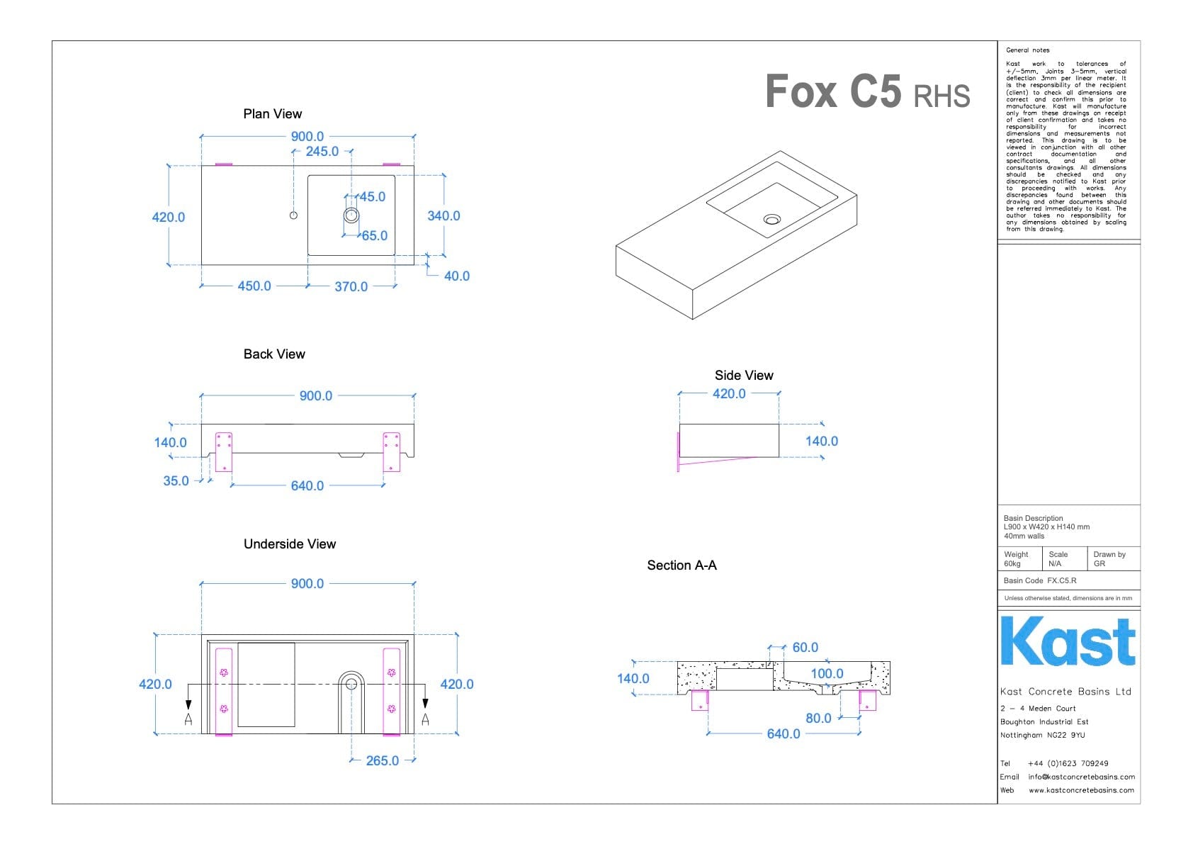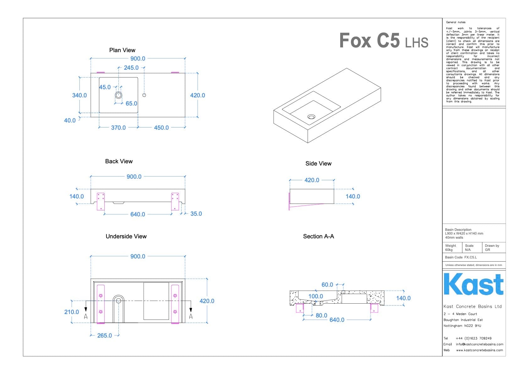 • FX.C5 = 900mm Length x 420mm Width x 140mm Height - 40mm Front Edge Thickness - 60kg