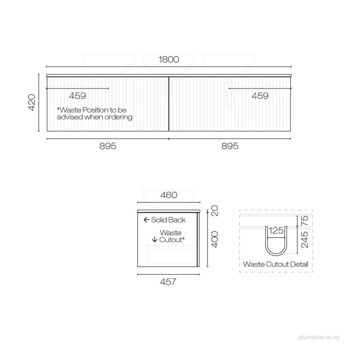 • When ordering this vanity please contact us to advise of your colour option: Comes in White, Lana Grey, Tusk, Kobe, Villa Blue, Fjord, Atmoss, Kombu Green, Slate, Marine Blue, Matte Black, Ranfurly Oak, Methven Oak, Black Bark, Tahoe Walnut