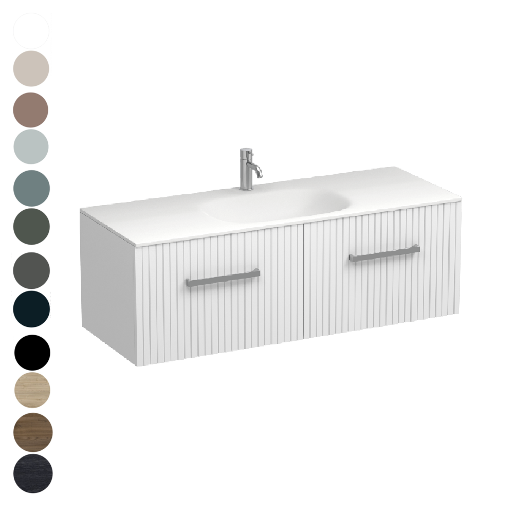 When ordering this vanity please contact us to advise of your colour option: Comes in White, Lana Grey, Tusk, Kobe, Villa Blue, Fjord, Atmoss, Kombu Green, Slate, Marine Blue, Matte Black, Ranfurly Oak, Methven Oak, Black Bark, Tahoe Walnut