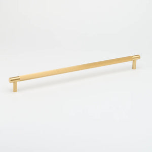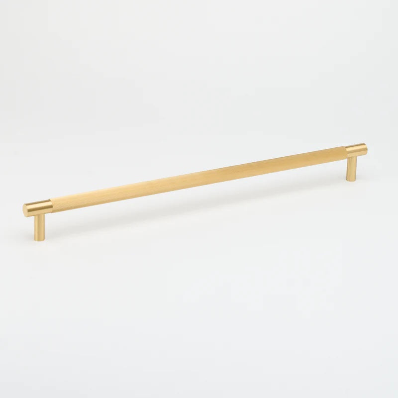 The classic Linear Pull design upscaled in size and dimension as an Appliance Pull suitable for installation on integrated fridges and freezers. Measuring 520mm in length with a 17mm handle diameter, signature linear knurling detail and smooth satin ends. Crafted in solid brass with an electroplated aged brass finish.