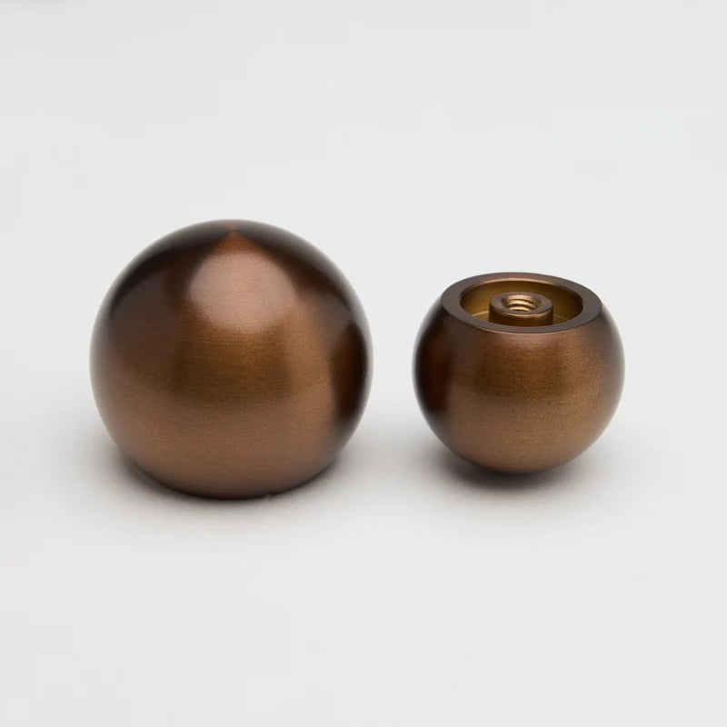 The Lo&Co achieve elevated sophistication with these solid brass spherical cabinet knobs with circular grain detail. Available in two sizes—30mm and 40mm. Refined and elegant. Pair these knobs with our Sphere Pull range for dramatic effect! Solid brass with a bronze electroplated finish.