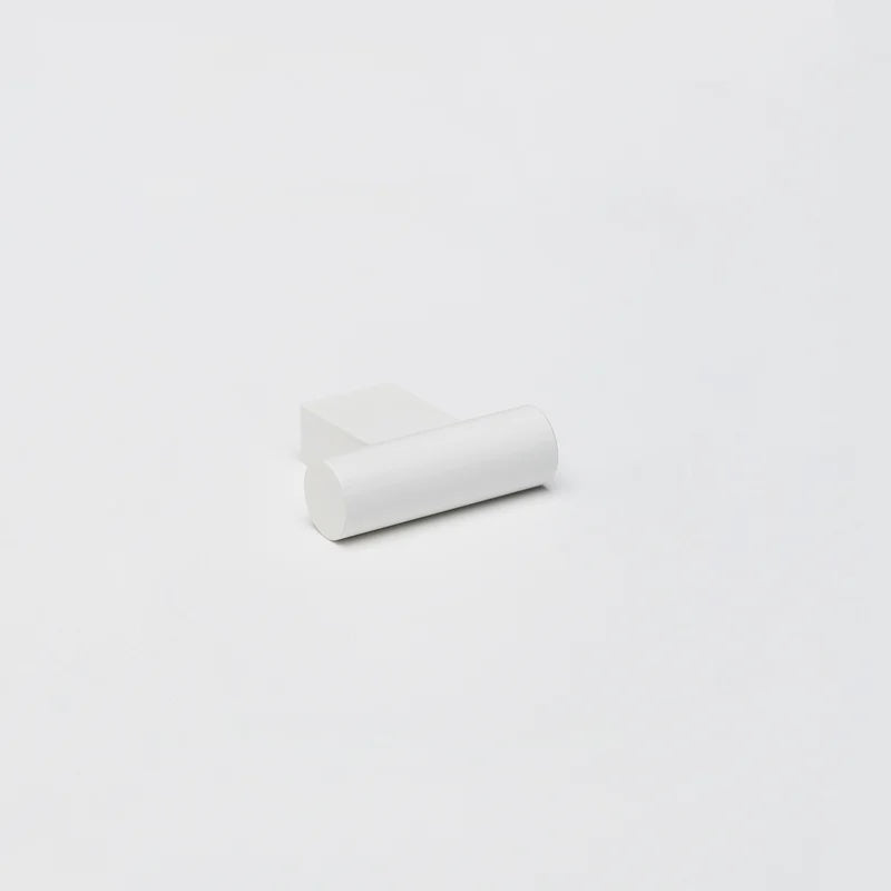 The Lo&Co solid brass T Pull handle with a powder-coated matte white finish. Total length is 38mm, projection is 32mm and diameter is 12mm.