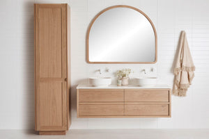 A welcome addition to any bathroom or laundry, the Pacific Tower Unit is the ultimate combination of style and function. The meticulously crafted shaker profile door hides an abundance of storage and a full-length mounted mirror.