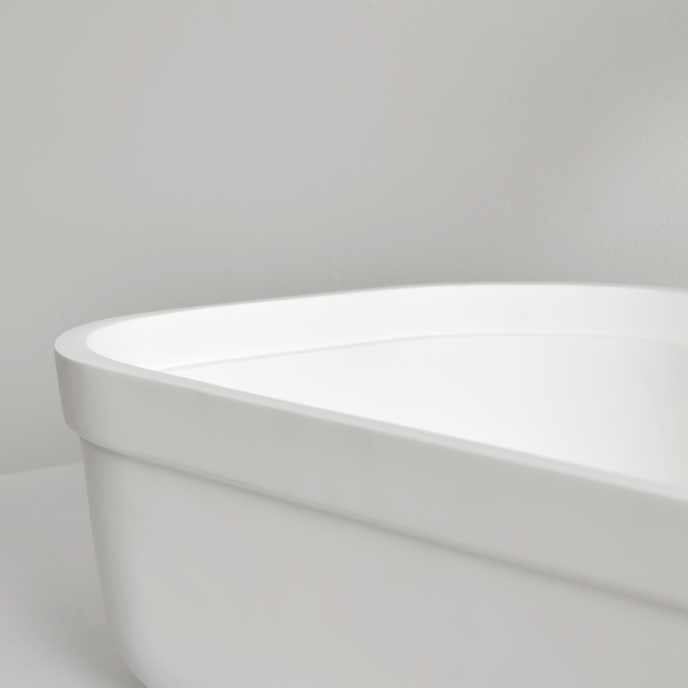 Mains Water Co. products are made from a solid surface material that is hypoallergenic and non-toxic. Not only a healthy choice for people, it is also environmentally friendly as it is 100% recyclable and can be repaired at any point of its life cycle. This eliminates waste & production rejects as materials and end-of-life products can be reused, and bathware can be repaired, instead of replaced.