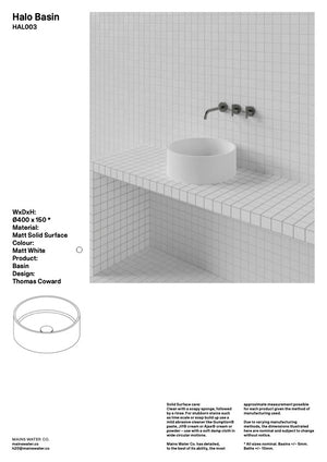 Mains Water Co. products are made from a solid surface material that is hypoallergenic and non-toxic. Not only a healthy choice for people, it is also environmentally friendly as it is 100% recyclable and can be repaired at any point of its life cycle. This eliminates waste & production rejects as materials and end-of-life products can be reused, and bathware can be repaired, instead of replaced.
