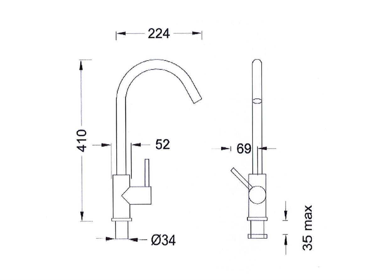 A sleek, stylish, gooseneck mixer. The elegant cylindrical form reflects modern design trends and is manufactured to the highest quality standards.