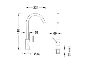 The Mercer Aurora Gooseneck Mixer is custom made to suit their range of sinks and accessories.