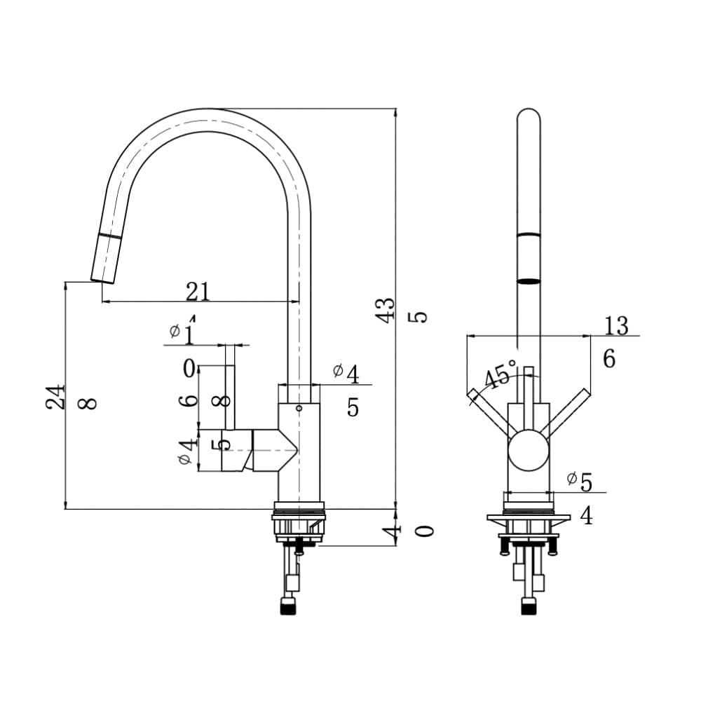 The Mercer Aurora Gooseneck Pull Out Mixer is custom made to suit our range of Aurora sinks and accessories.