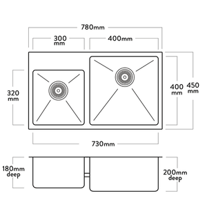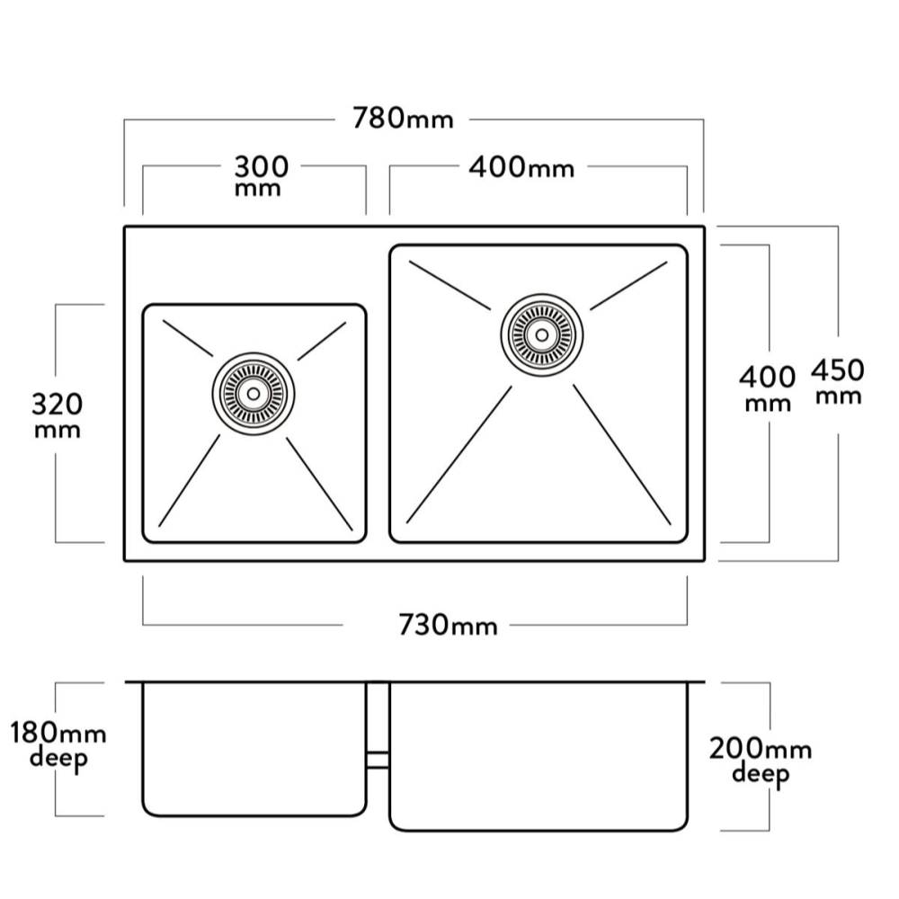 Mercer DV Stratford Double Sink | 300 + 400mm