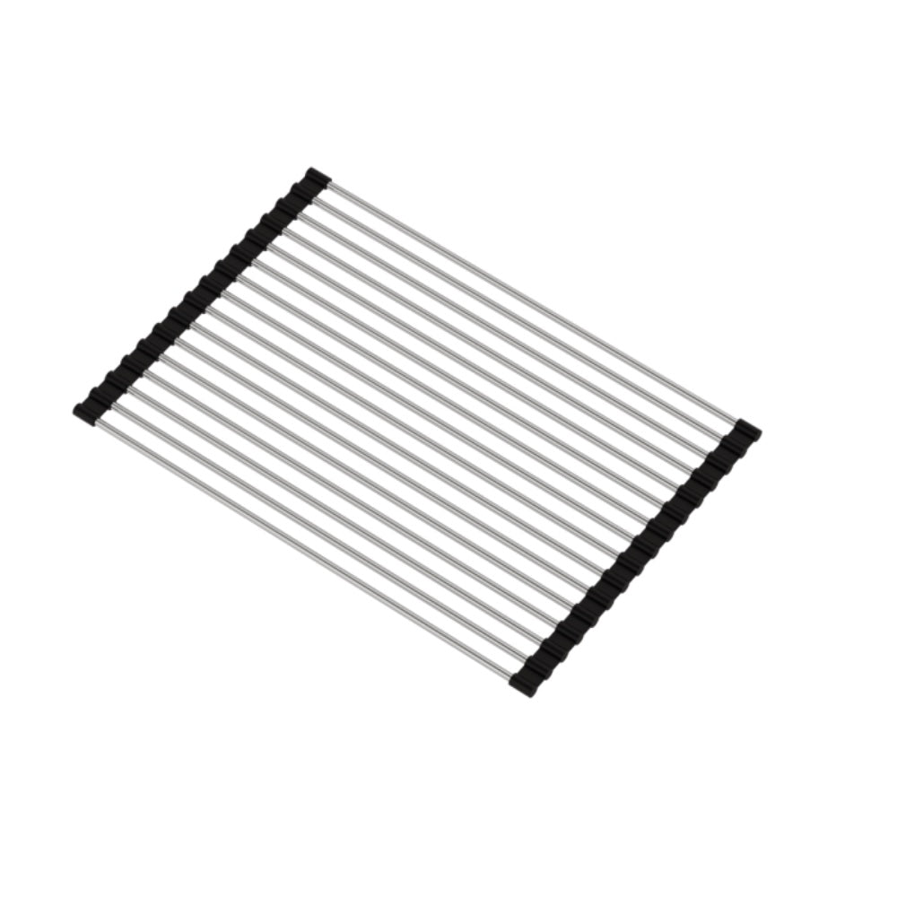 Meet the Basalto Folding Mat – a sleek, space-saving stainless steel roll-up drainer designed for your sink. When needed, simply unroll it over the bowl to drain washed items; when not in use, it can be rolled away neatly into the rim. Perfect for modern kitchens with limited space, it reinforces the Basalto aesthetic of clean geometry, premium materials and intelligent functionality – always ready, always neat, and always in place.