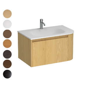 Stanza Curve combines delicate handcrafted curves with the inviting warmth of timber veneer, resulting in a visually striking piece. Available in a wide range of sizes, including left and right corner options for maximising space in smaller bathrooms, Stanza Curve is finished with a Spio solid surface top.