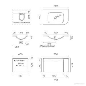 Tap holes and waste holes can easily be drilled by the installer using standard hole saws, or top can be cut out for inset basins.