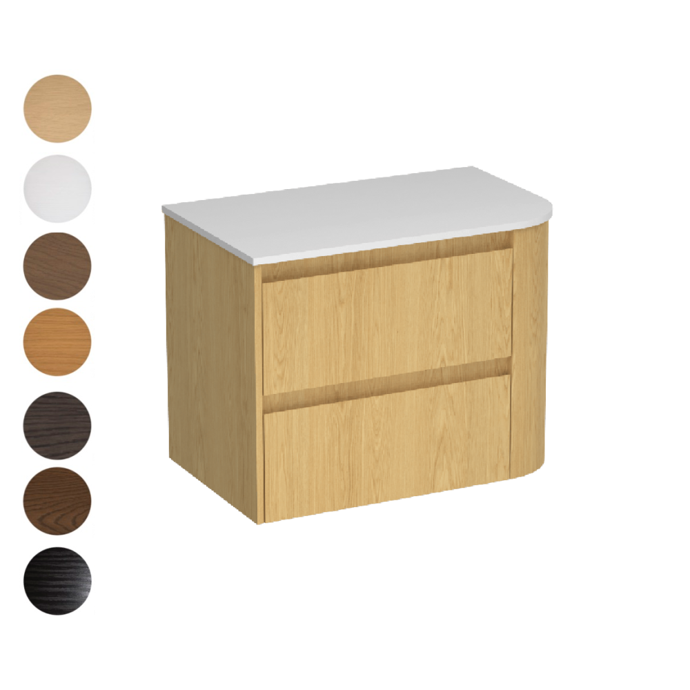 Designed with both style and functionality in mind, Stanza Curve offers a versatile solution for contemporary bathrooms, with a wide range of size including left and right corner options for smaller spaces. The Opaco solid surface top is available in three colours, allowing you to choose the perfect match for seven American Oak veneer finishes available