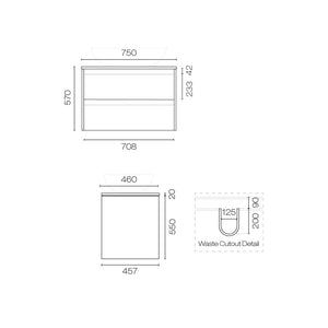IMPORTANT NOTE: This vanity is not supplied with any tap or waste cut out holes. Standard sized drill bits are provided and it is the responsibility of the installer to drill these holes in to the benchtop.
